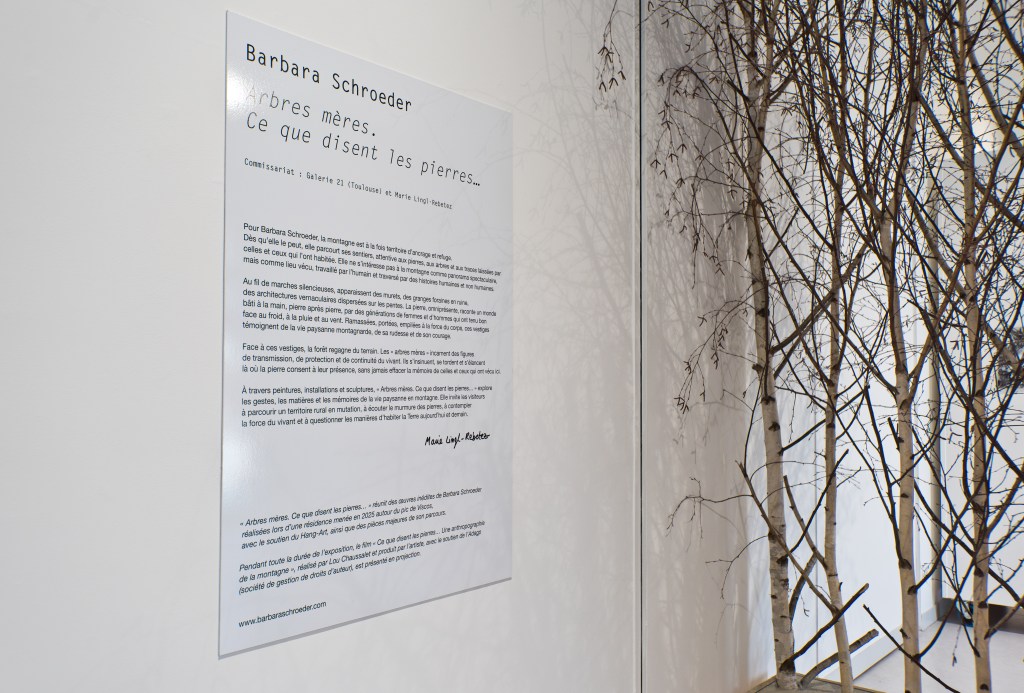 Pendant six mois, j’ai co-organisé l’exposition personnelle À l’orée des champs de Barbara Schroeder au Château de Taurines, Centrès (du 21 juin au 21 septembre 2025).